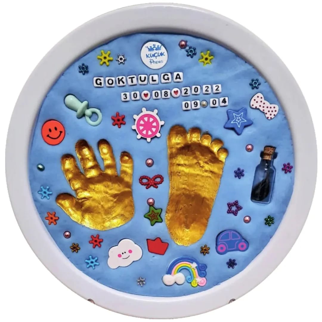 Statik Hamur Mavi, Çerçeveli Bebek El Ayak Izi Hatıra Seti